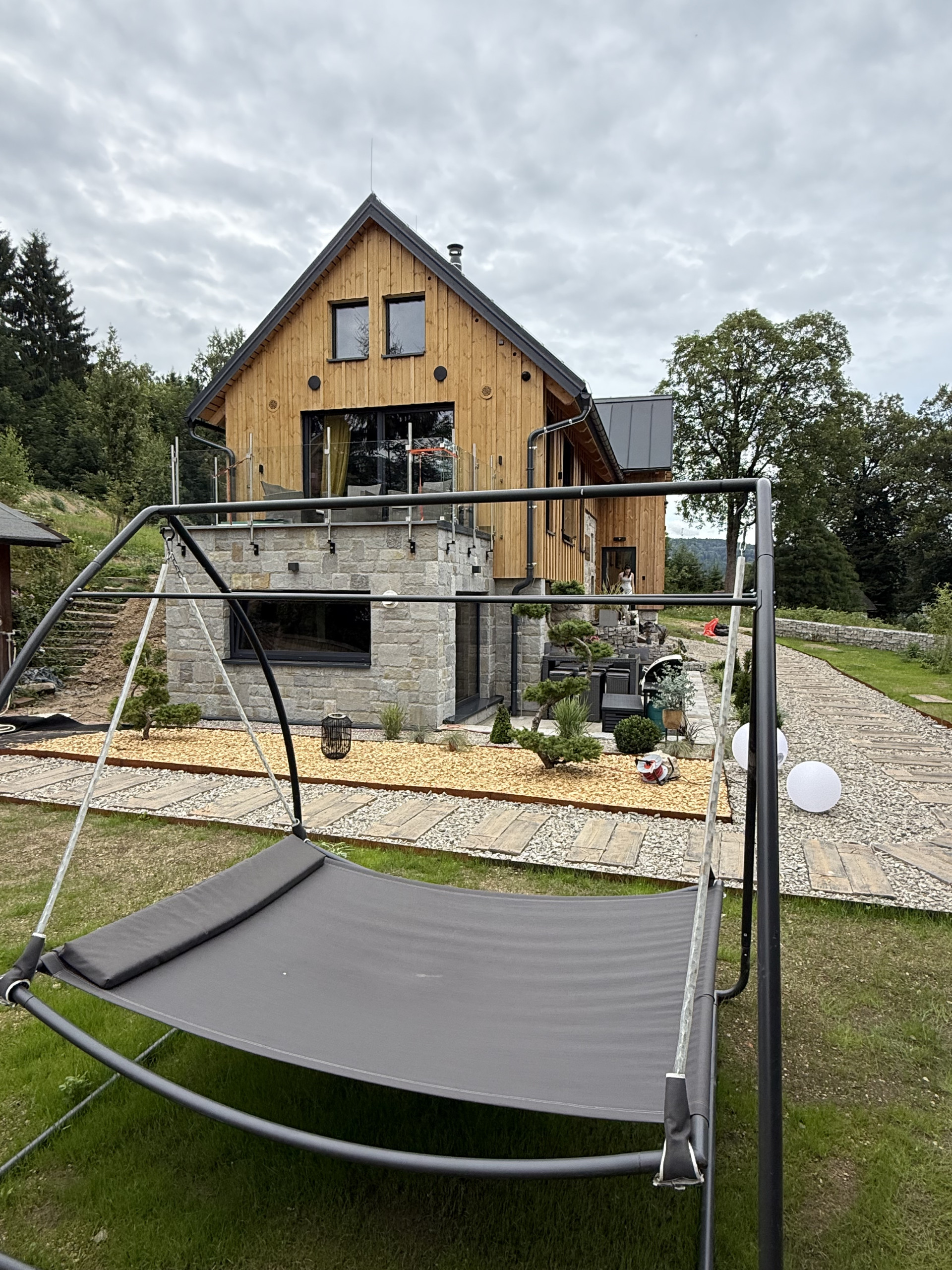 The villa is ideally located for both winter and summer activities. Opposite the house is the Tanvaldský Špičák ski area, with multiple slopes and chairlifts. Cross-country ski trails and other ski areas such as Javorník and Harrachov are nearby. For hiking and cycling enthusiasts, there are numerous trails through the forests and mountains.