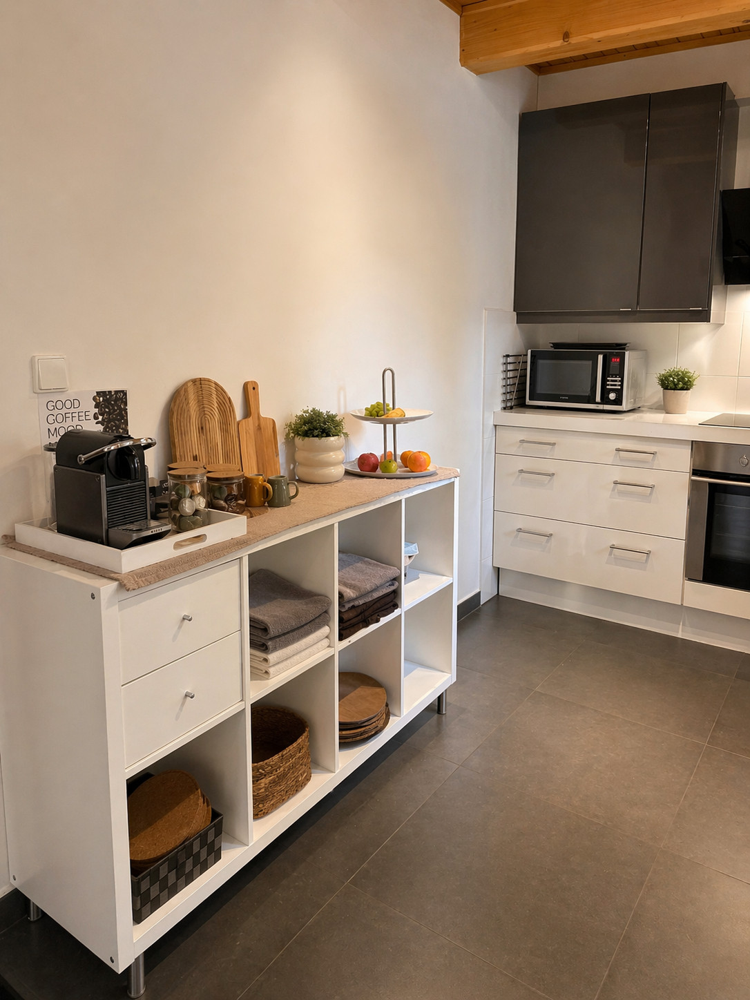 Schöne Unterkunft, in der wir uns sehr wohl gefühlt haben, gerade im Wohnzimmer mit dem Kamin. Die Unterkunft erlaubt viel Privatsphäre mit seiner Lage am Hang, in ca. 20-30min ist man auch in allen näheren Ski-Gebieten, einzig dass man nicht direkt in einem Ski-Gebiet liegt, bzw. den nahen Anschluss an einen Bus hat, machte das Auto für uns notwendig.