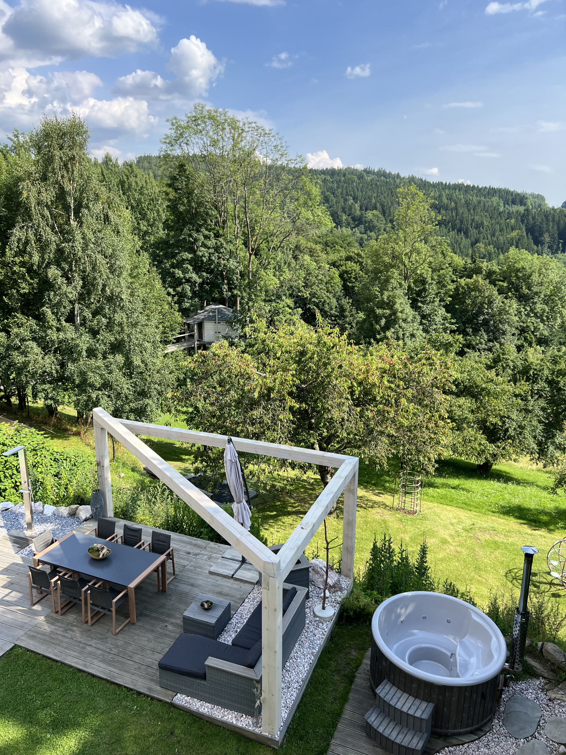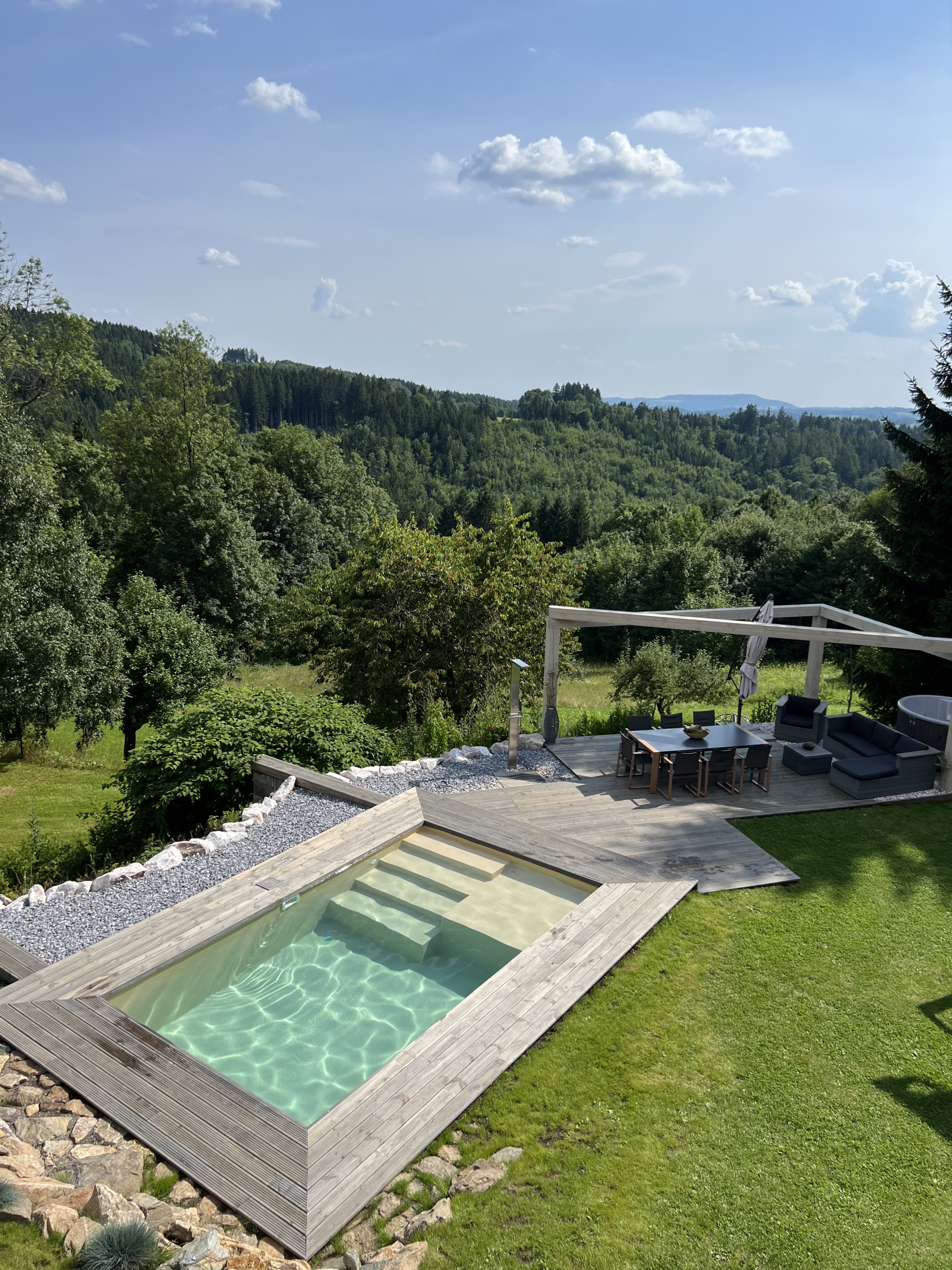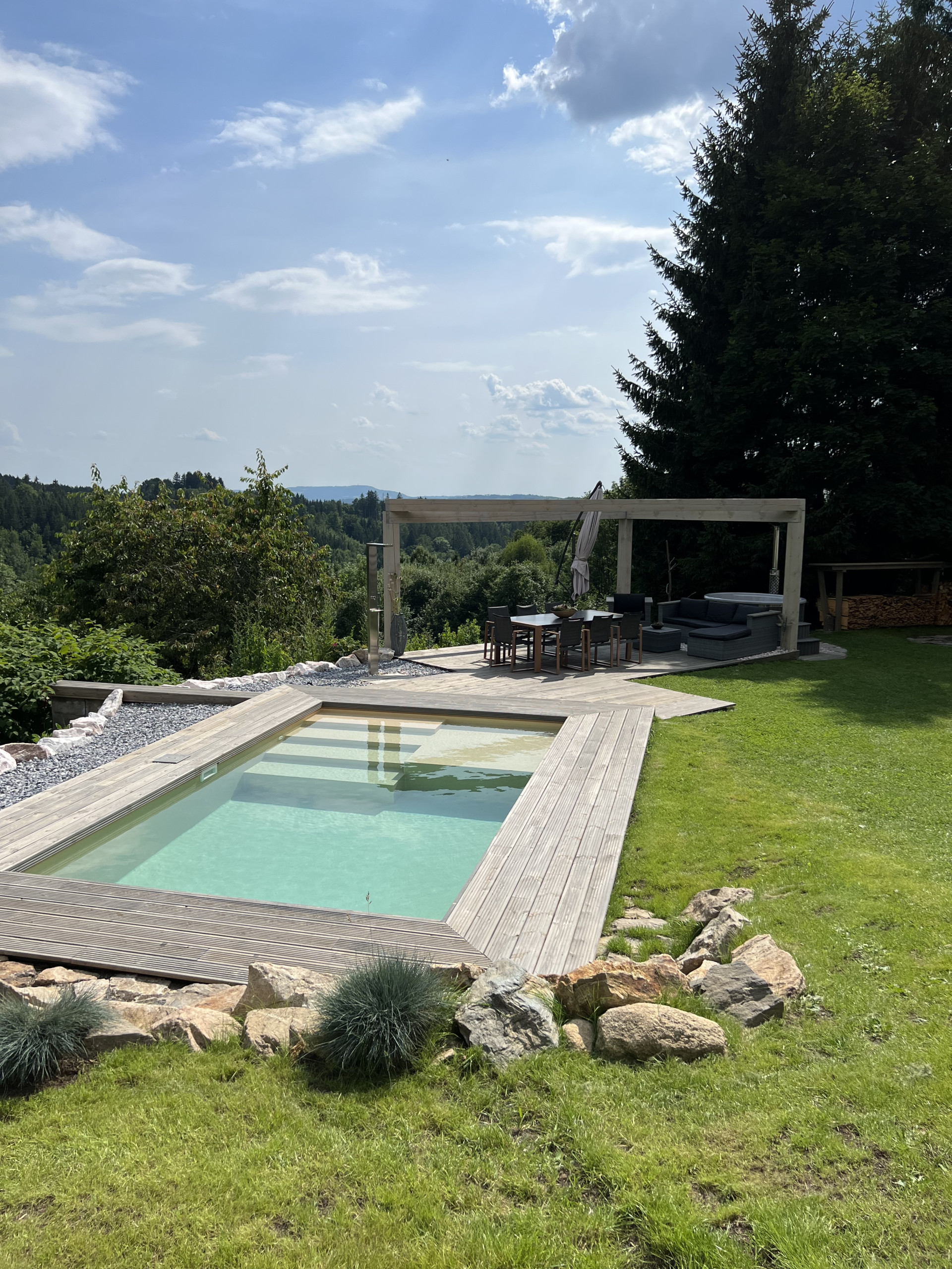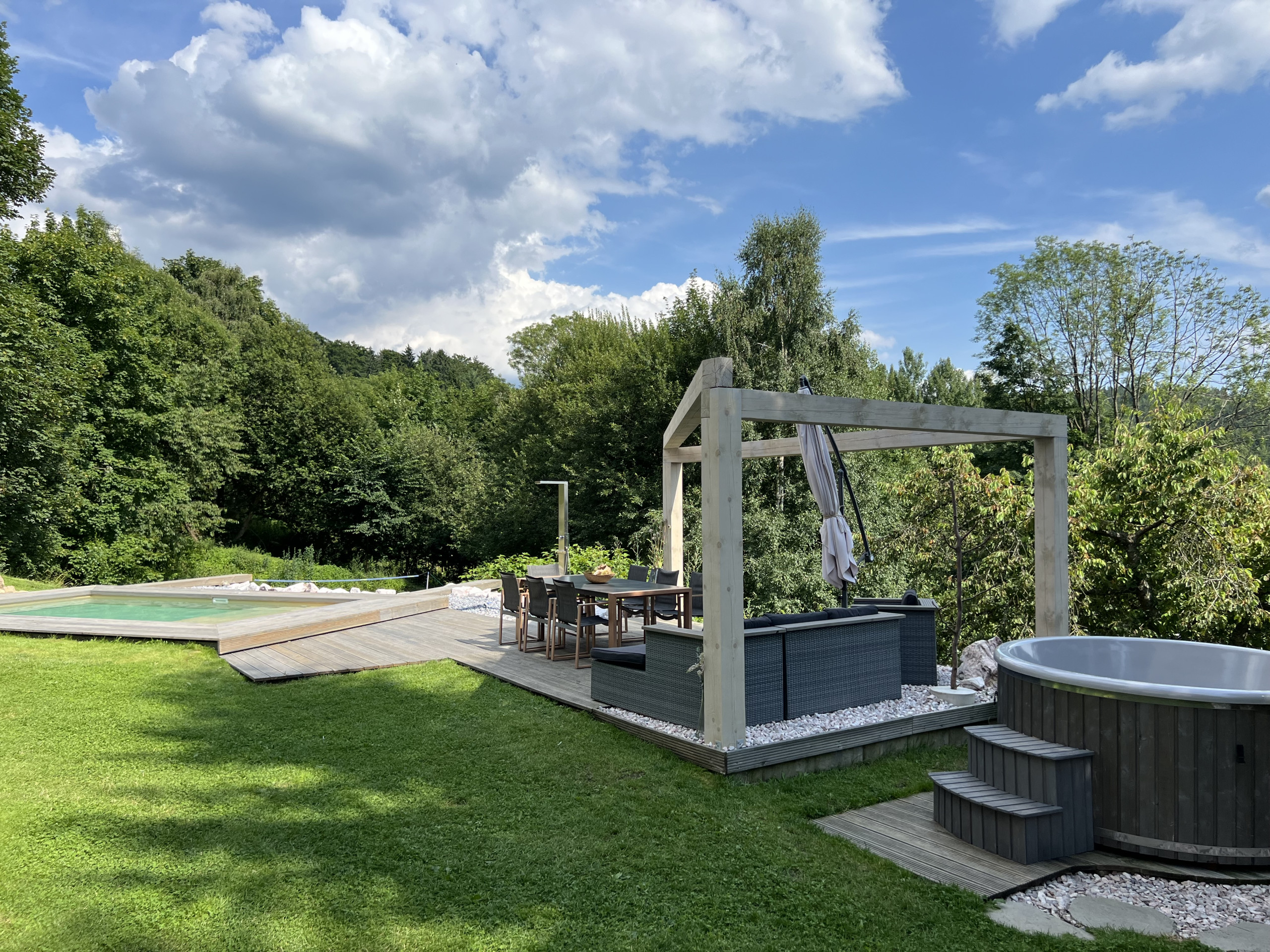 Ddvě vířivky,sauna, bazén, hřiště,houpačka, trampolína,grily...V krásném okolí budete mít pocit, že nikam nemůžete odcházet,abyste si ji užili naplno.Jsme unešeni,...