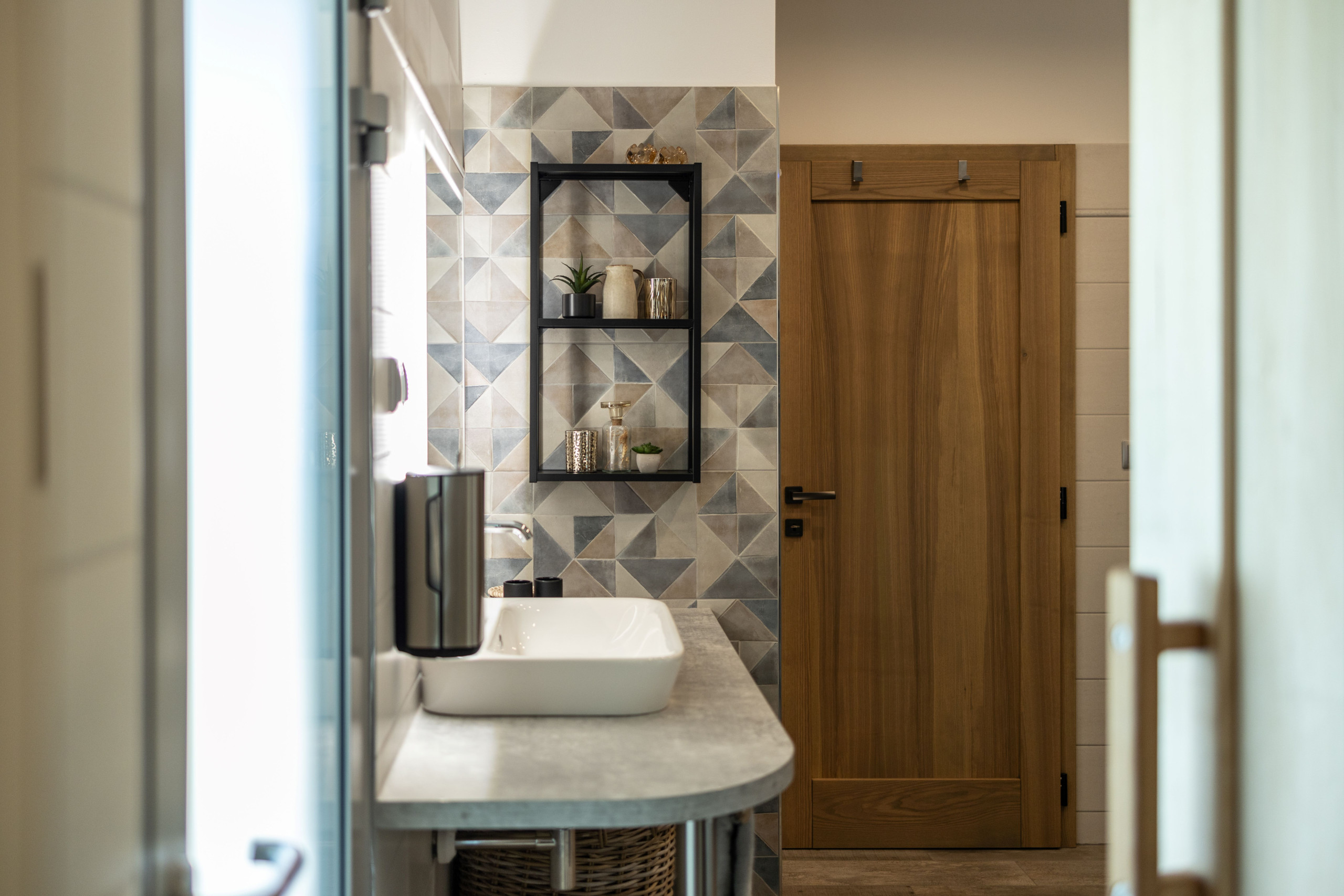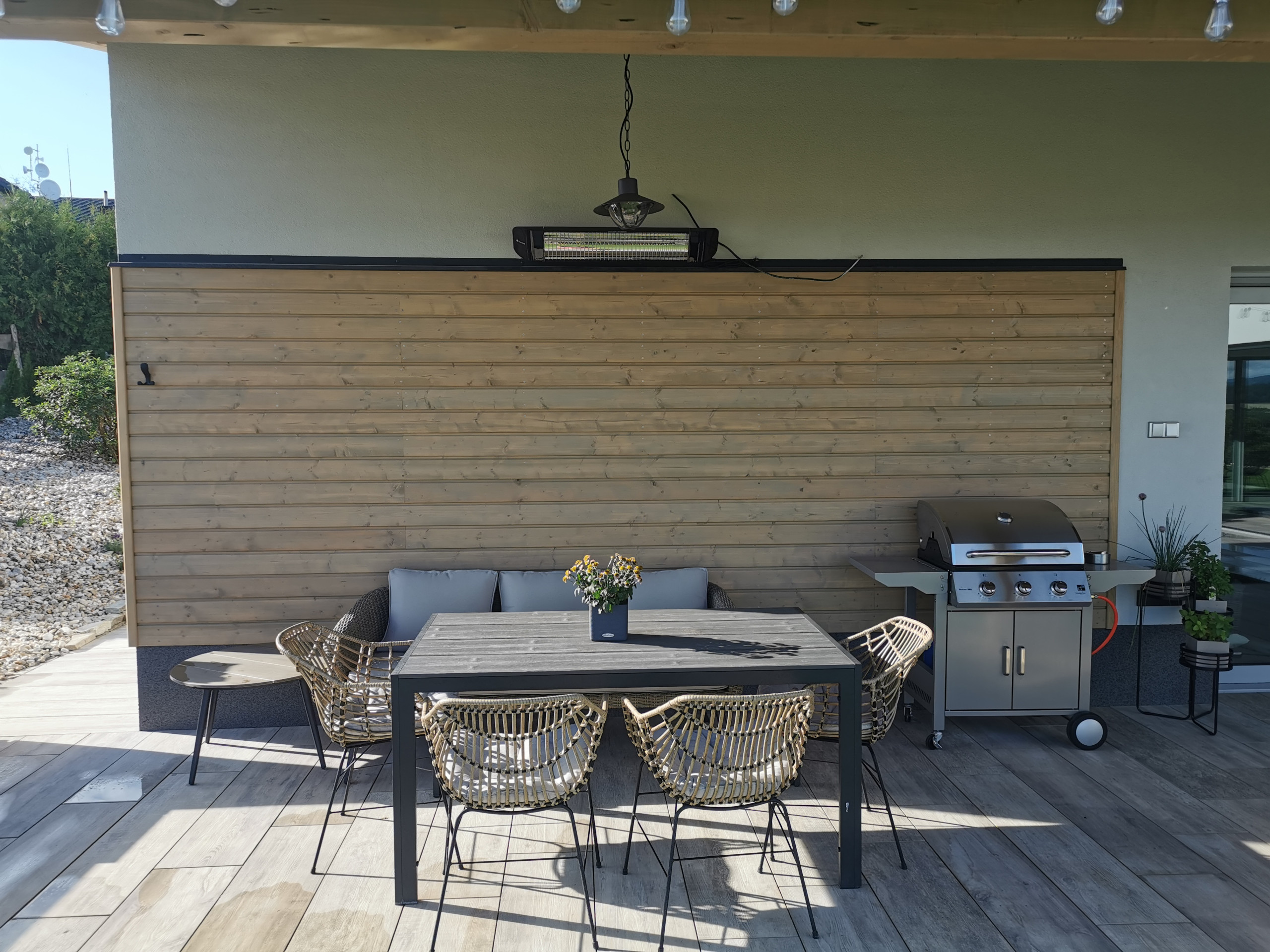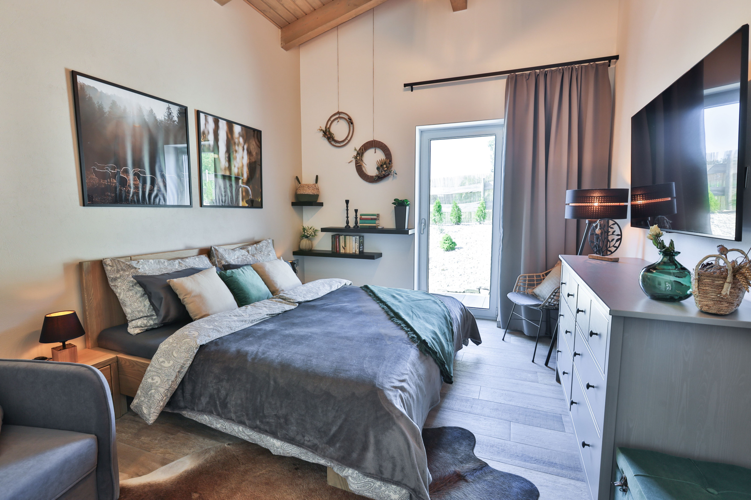 The wellness area connects directly to the living room and features a beautiful indoor pool (30°C), counter-current system, lighting and sliding doors you can open halfway in summer so the indoors and outdoors blend together. In the relaxation area you’ll find loungers, bathrobes, soft towels and sauna sheets, all included.