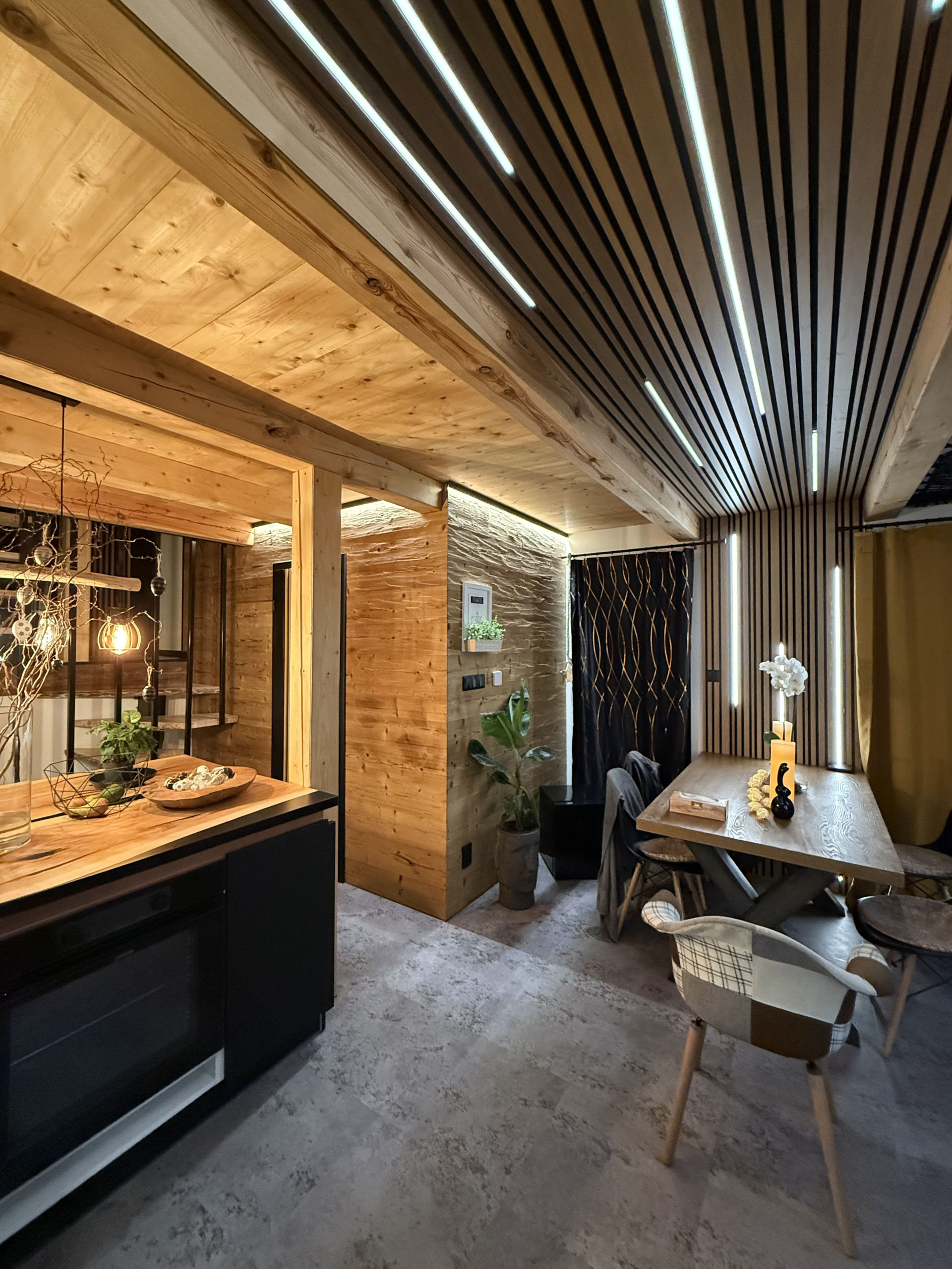 Logement meublé avec goût et moderne, situé en au pied des pistes de ski, avec vue sur la montagne et la piste de ski.