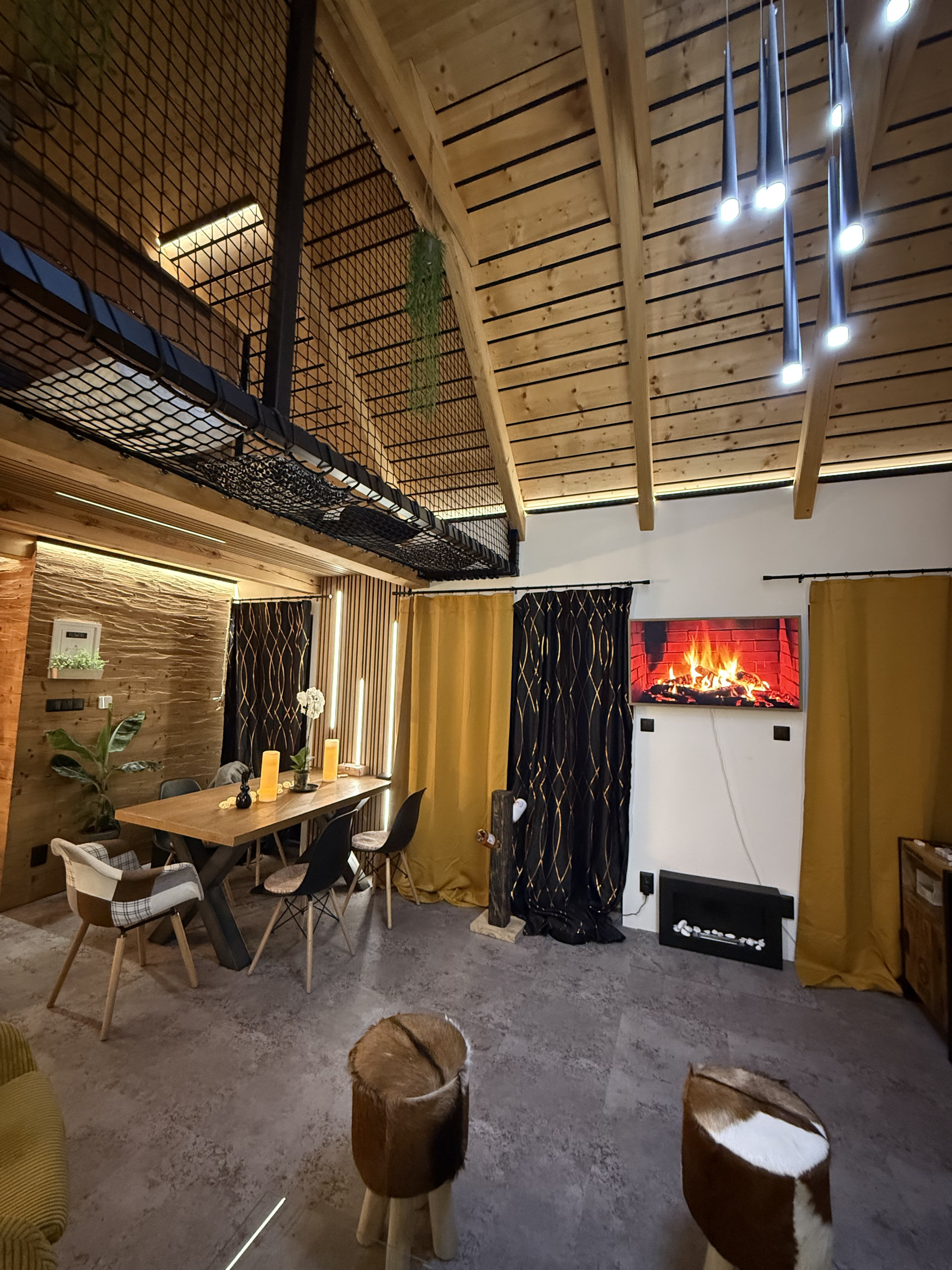 Elle dispose de jardin, mobilier de jardin, terrasse, lave-linge, sèche-linge, barbecue, cheminée, accès internet (wifi), sèche-cheveux, zone pour les enfants, alarme, spa, chauffage pompe à chaleur, parking extérieur même bâtiment, TV.