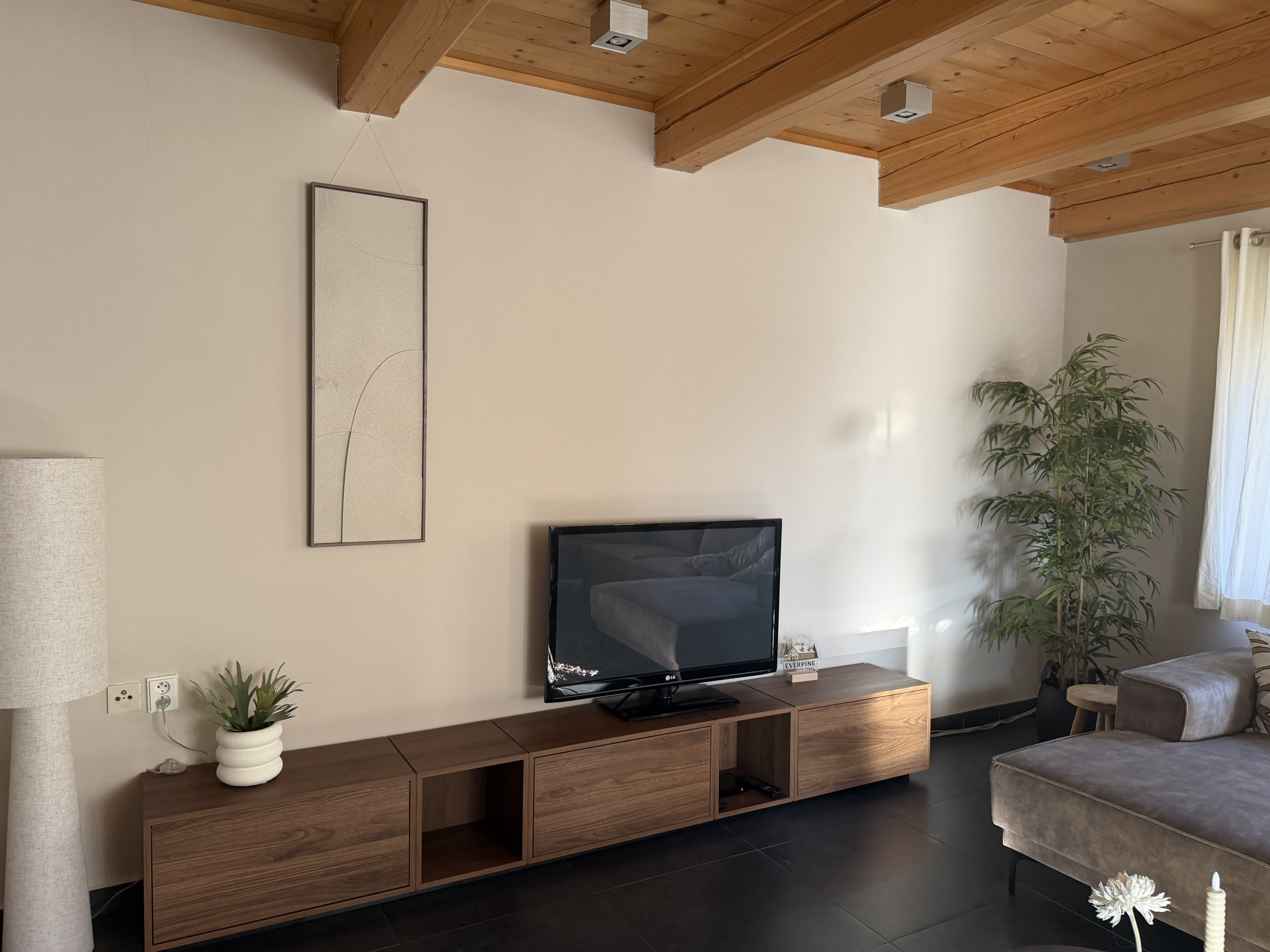 Schöne Unterkunft, in der wir uns sehr wohl gefühlt haben, gerade im Wohnzimmer mit dem Kamin. Die Unterkunft erlaubt viel Privatsphäre mit seiner Lage am Hang, in ca. 20-30min ist man auch in allen näheren Ski-Gebieten, einzig dass man nicht direkt plus