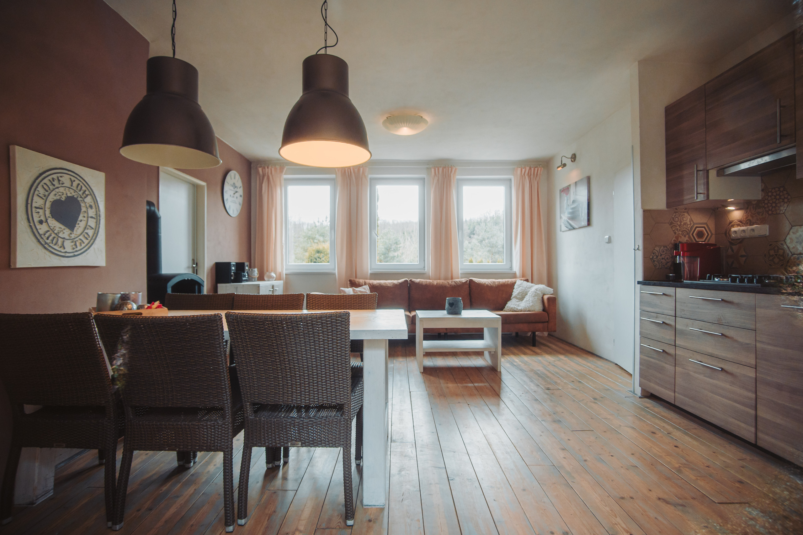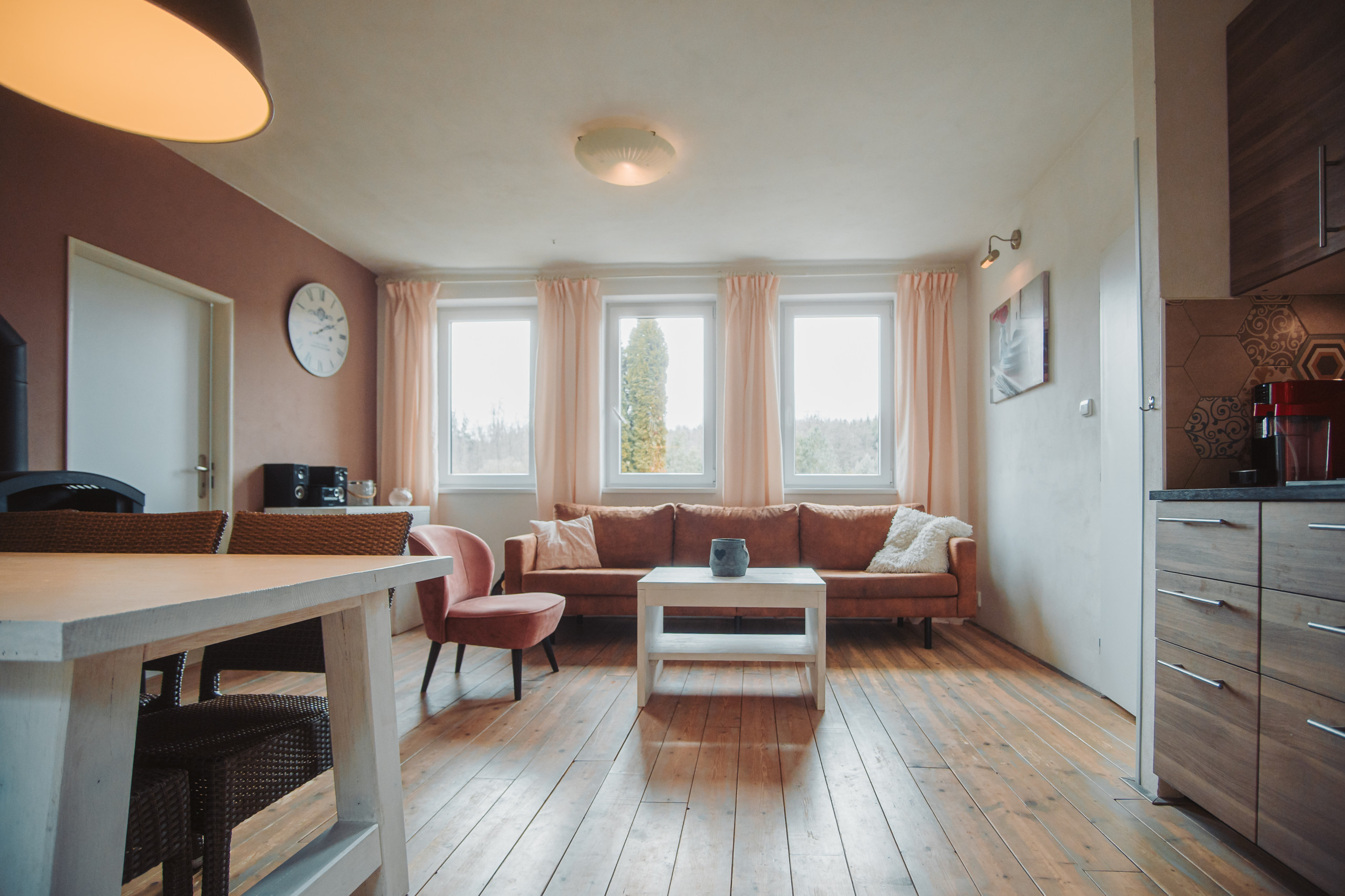 Logement de 70 m² accueillant et totalement équipé, avec vue sur le jardin et la rivière.