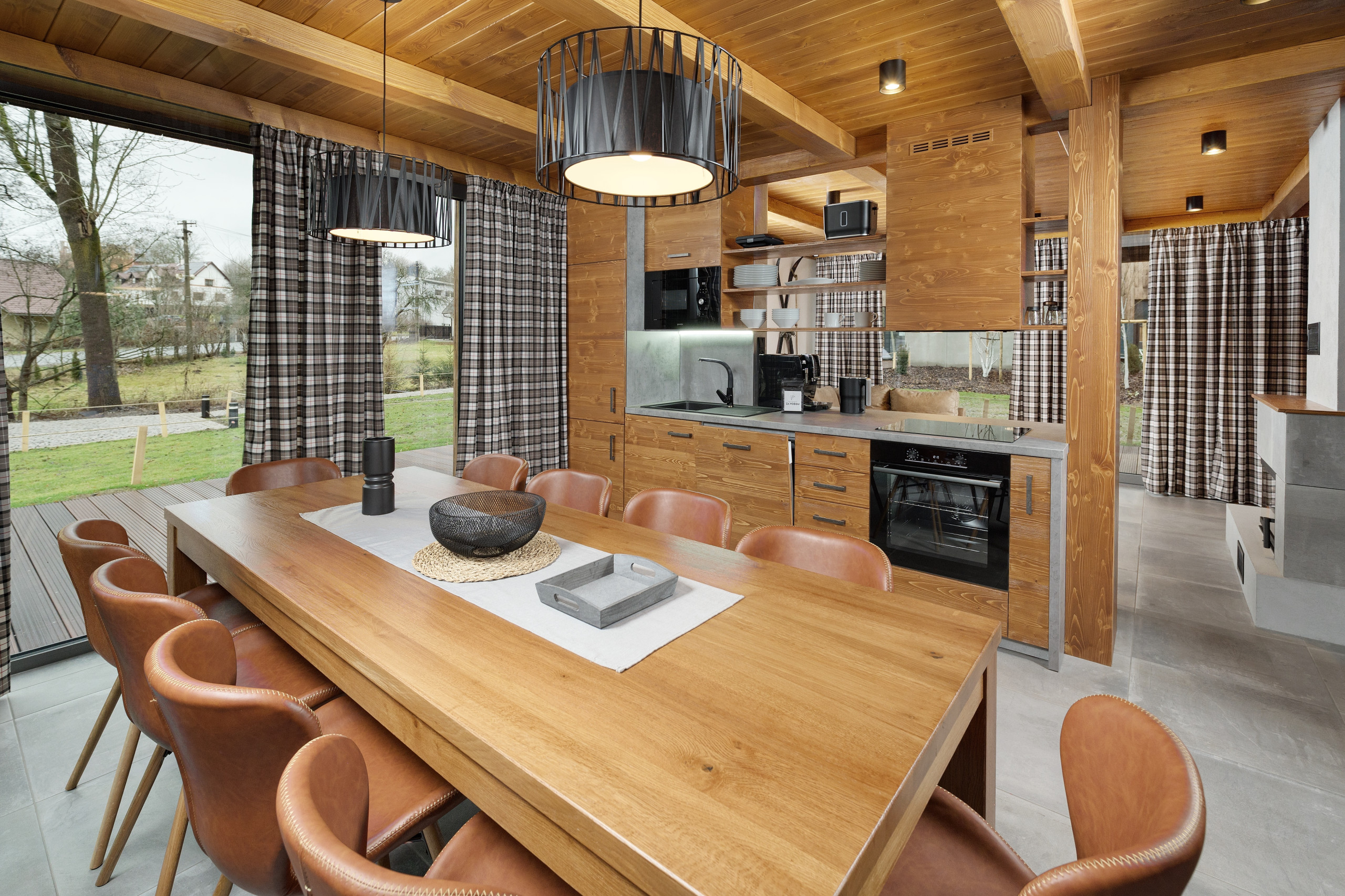 De woonkamer is het hart van het huis: een lange tafel voor avonden die net iets langer duren dan gepland, een knisperende houtkachel en genoeg ruimte om met z’n allen te koken, praten en relaxen. De keuken is volledig uitgerust, zodat je makkelijk voor een grote groep kookt.