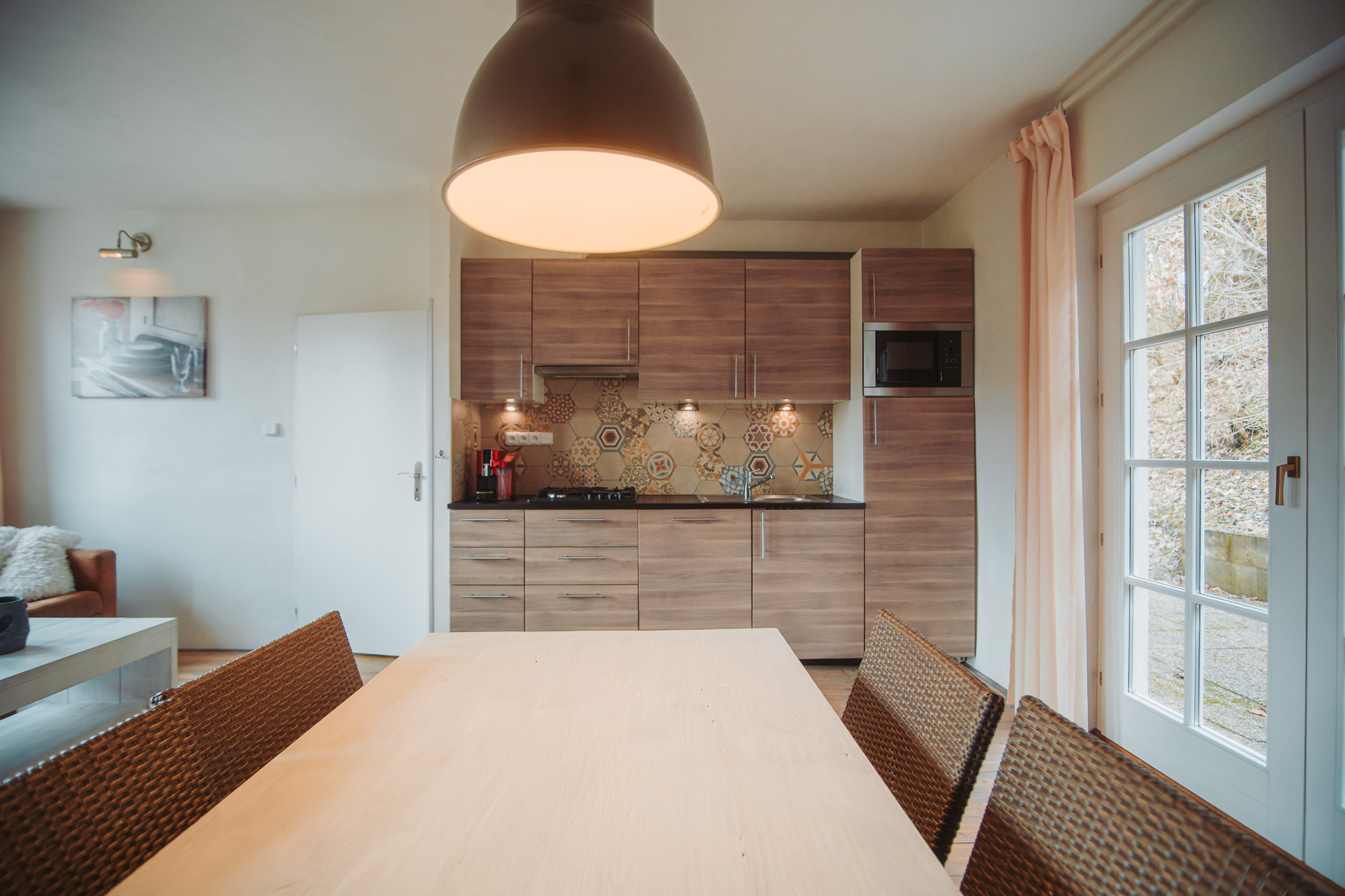De woning is geschikt voor maximaal 8 personen en heeft een warme, huiselijke sfeer. In de woonkamer met houtkachel is het heerlijk ontspannen na een dag buiten. De open keuken is modern en compleet ingericht, ideaal om samen te koken en uitgebreid te tafelen. Er zijn drie slaapkamers en een nette badkamer met douche, toilet en wastafel. Via de tuindeuren stap je zo naar buiten, waar twee terrassen met tuinmeubilair op je wachten. Perfect voor een rustig ontbijt in de zon of een lange zomeravond.